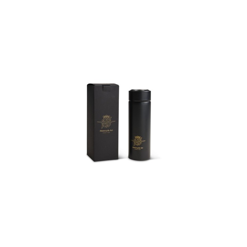 Always stay hydrated with the MV Agusta Thermo Bottle. A sleek black aluminum bottle detailed with a golden lasered MV Agusta logo and dedicated 75th Anniversary logo.350 mL in capacity.Height: 215 mm. Diameter: 65 mm