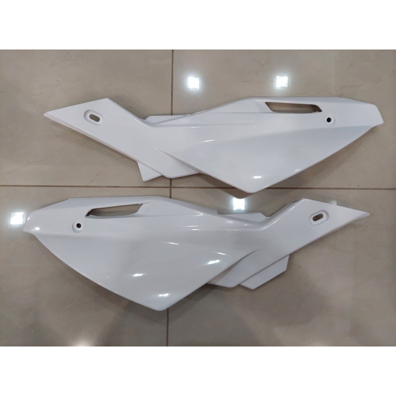 Side seat covers for Husqvarna SMRR 450 SMRR 530 SMR510 2008-2010 with double exhaust. Are available in white or black.